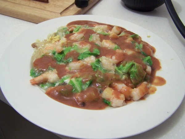 今天ㄚ桑做的是豪華版的 --- 蝦仁滿滿是